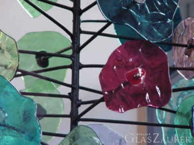 Gartenobjekte Kronleuchter Windlichter Anhänger Schmuck Mosaike Lampen Schalen Knöpfe Regale Bilder Vasen Teller Blüten Spiegel Winker Chapeux Windspiele Pâte de Verre Schichtbilder Bilderrahmen Perkussionsobjekte